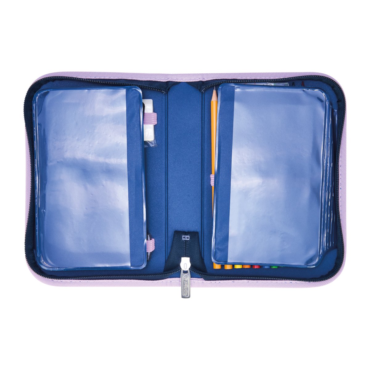 USP | Für Schule; Etui mit 2 Klappen; mit farbigem Reißverschluss; Schlaufen in unterschiedlichen Größen; guter Überblick, farbiges Innenmaterial farbig passend zum Motiv; farbige Stifteschlaufen; Maße: 20,5 x 14 x 3,8 cm; Material: Polyester; Befüllung: mit FSC zertifizierten Bunt- und Bleistiften, Fasermaler; Motiv: Unicorn Dreams |