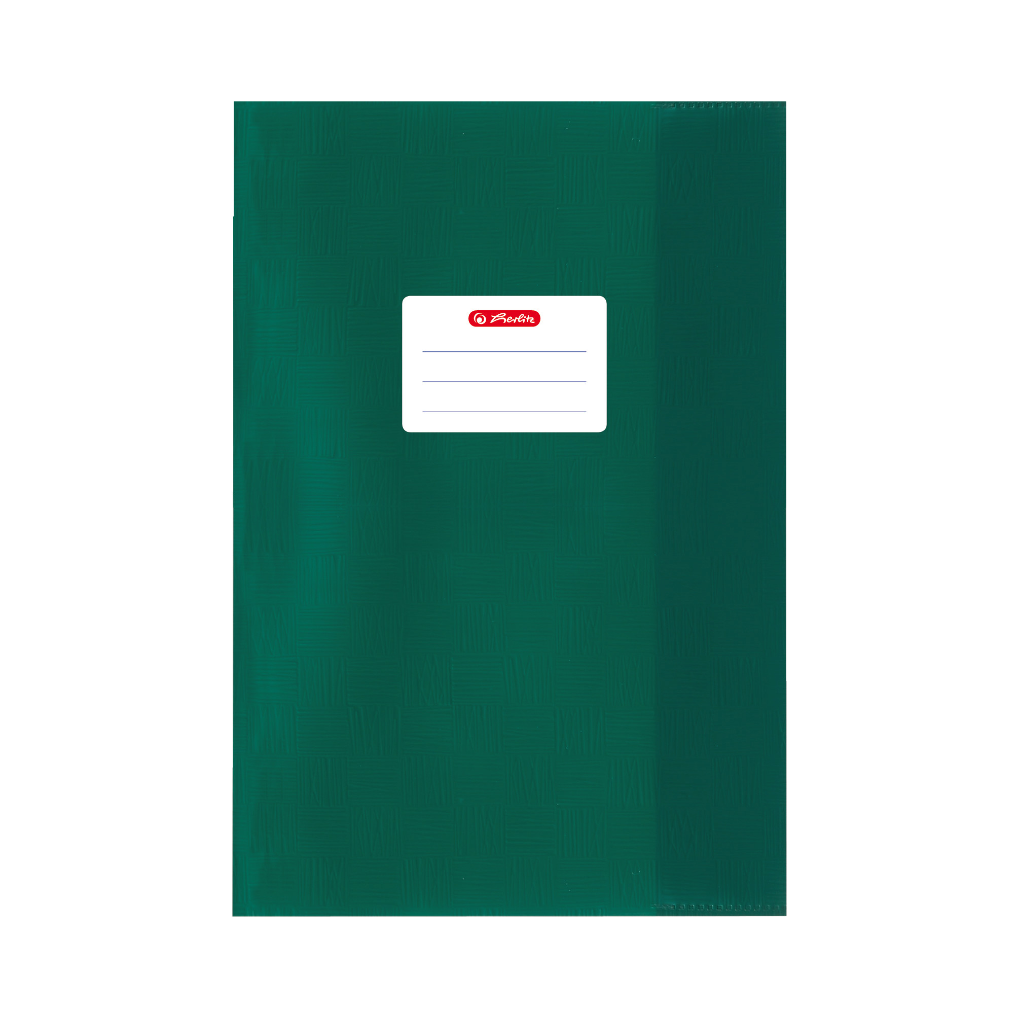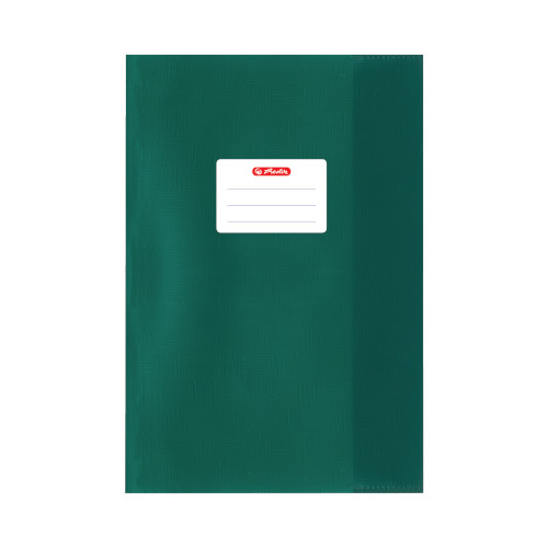 USP | Hefthülle A5 stabil abwischbar und flexibel; hergestellt aus 100µ Polyprophylenfolie 100% pvc-frei und recyclebar; rechts und links mit Einstecklaschen für perfekten Halt; Beschriftungsetikett auf der Vorderseite; Baststruktur dunkelgrün |