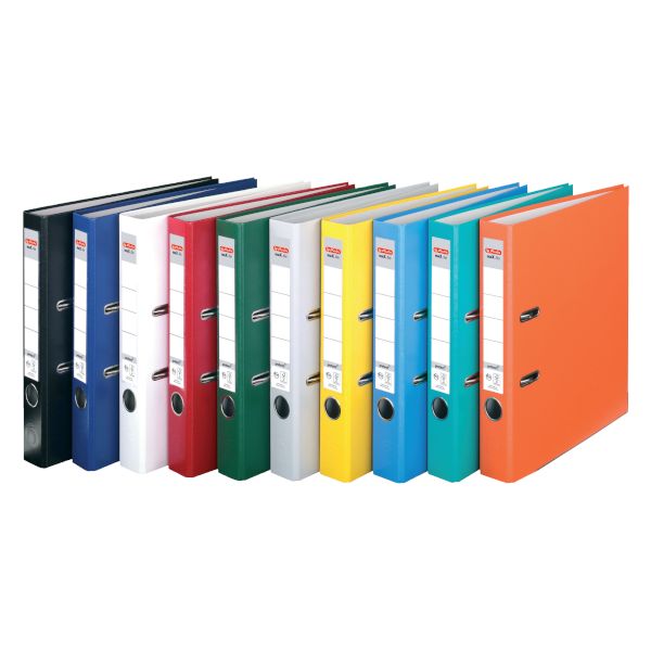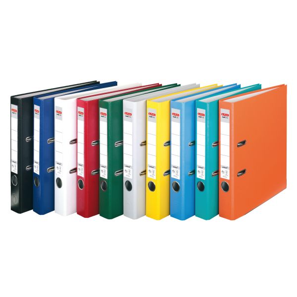 | PP laminated cover protective metal rims, stable reversible spine label logo-embossing below finger hole FSC Mix assorted colours 1 piece |