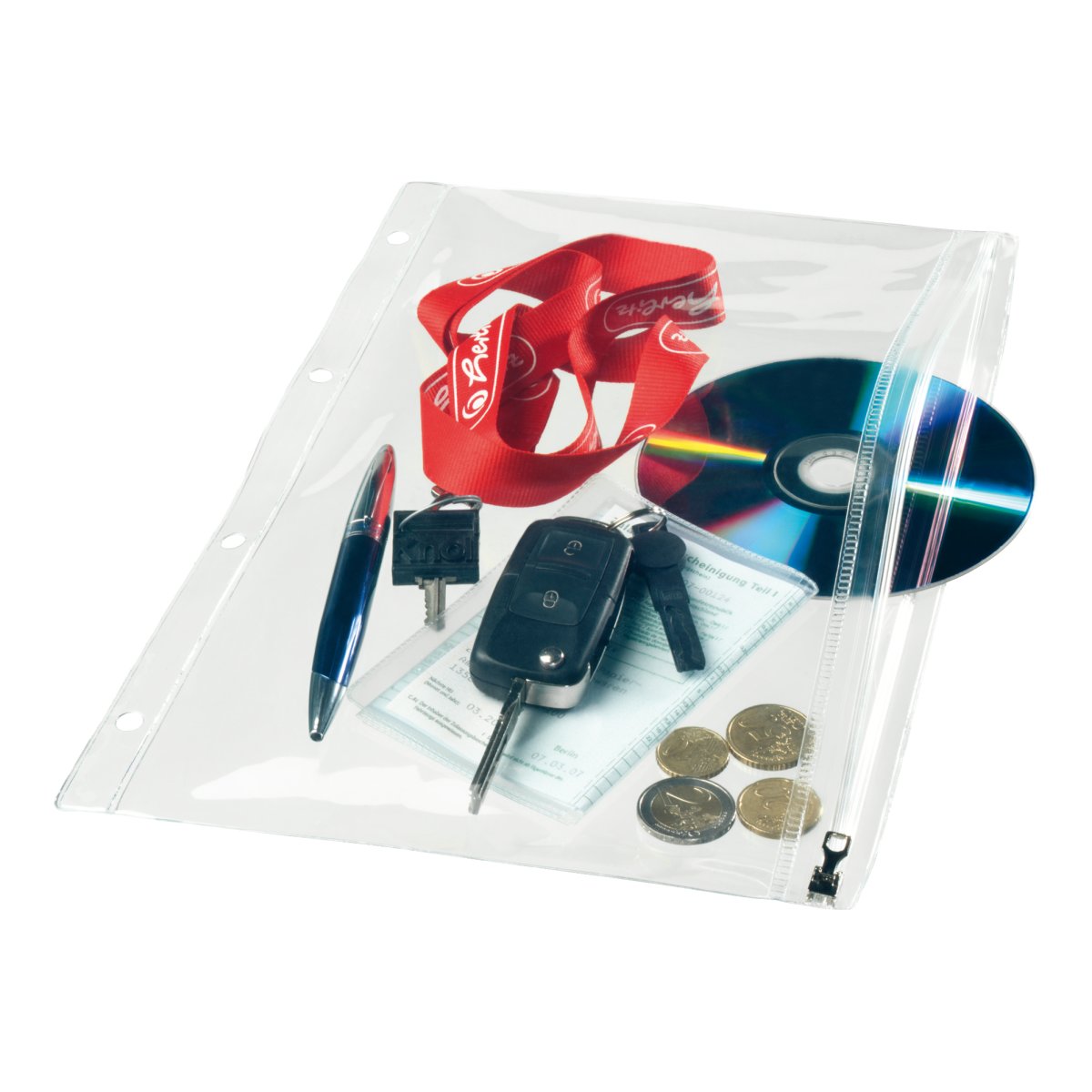 | PVC-foil 30x18cm (inner size), front cover transparent, with zipper-like closure, for filing, 4-hole-punched assorted colours 1 piece |