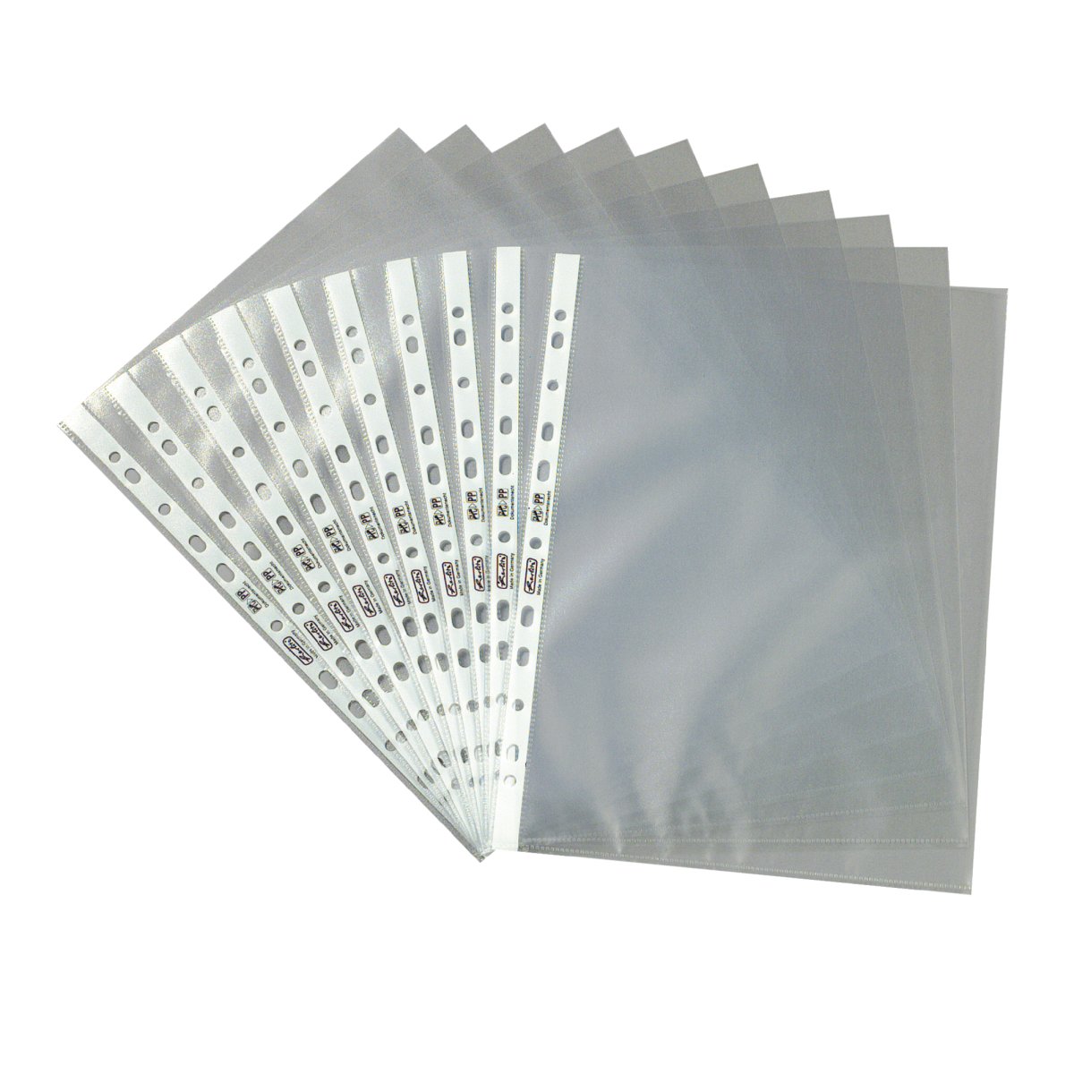 | PP-foil special embossed smudge proof reinforced spine, europunched transparent 10 pieces, shrink wrapped |