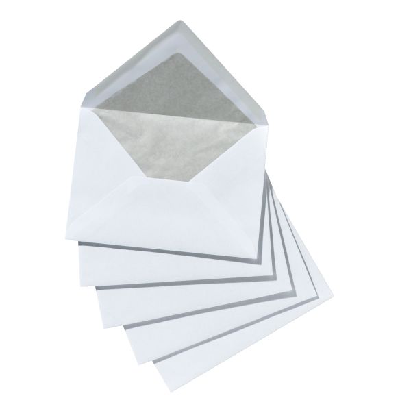 | woodfree paper, silk paper 16,2 x 11,4 cm gummed with silk lining white 25 pieces, shrink-wrapped |