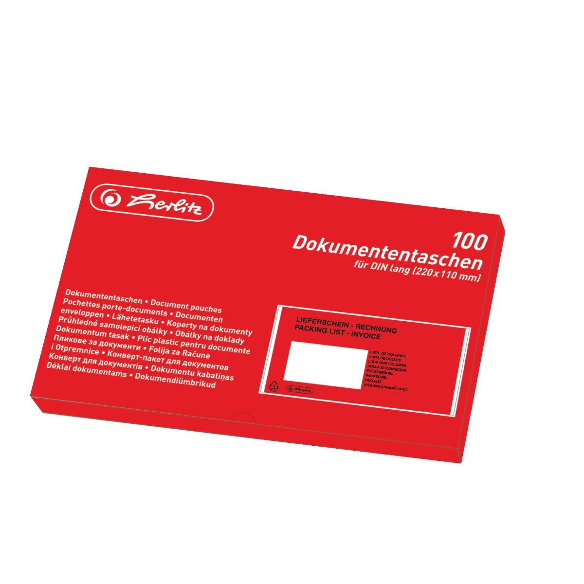 | PE foil ca. 24x14cm, inside 22,8x11,3cm w. imprint "packing list - invoice" self-adhesive red/transparent 100 pieces, in cardboard box |