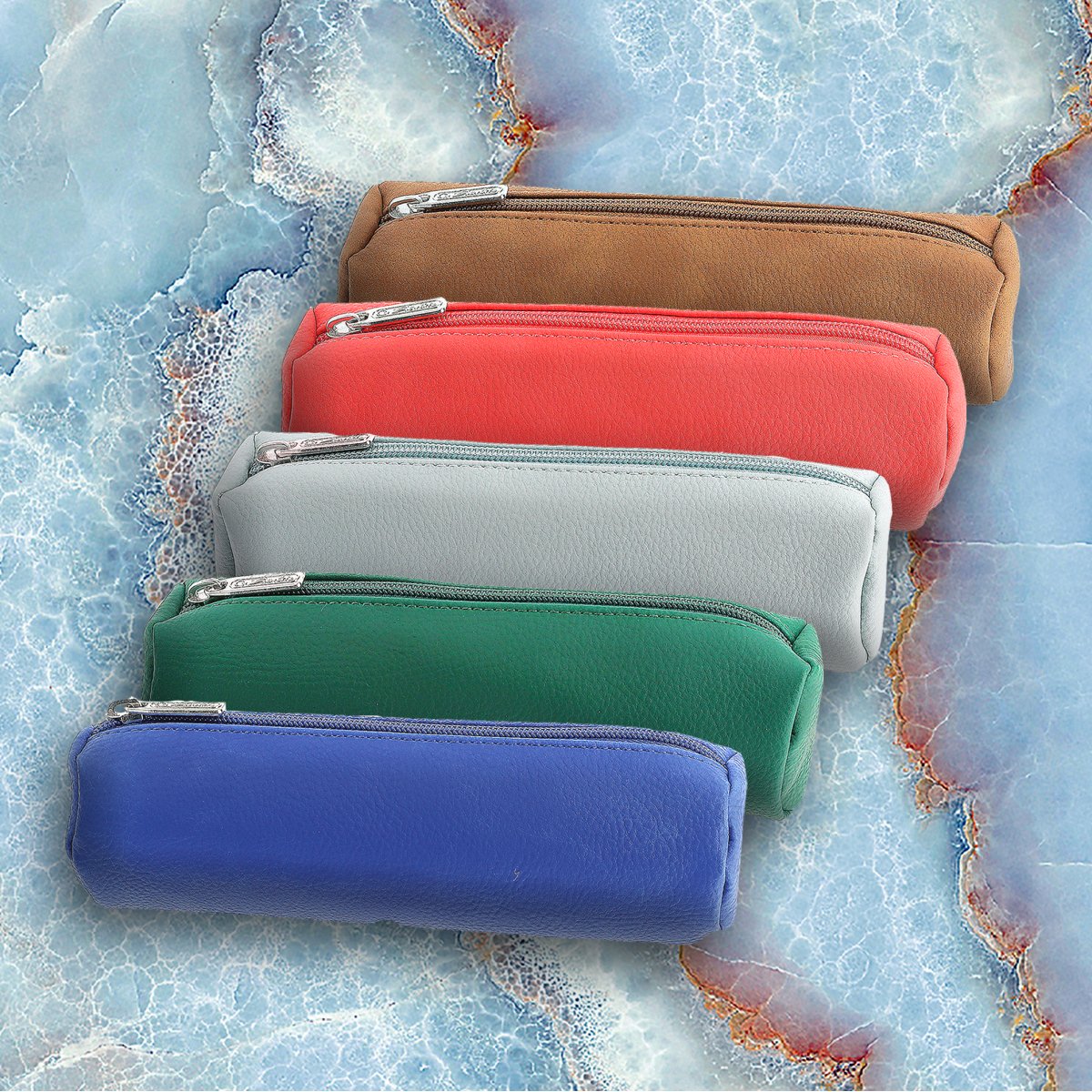 PU 20 x 6 x 6 cm 1 main compartment royal blue, forest green, mint, coralle, cognac 5 colours assorted |