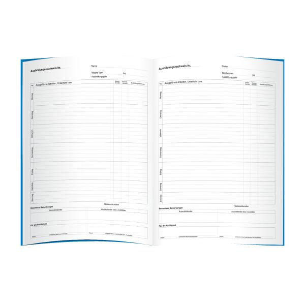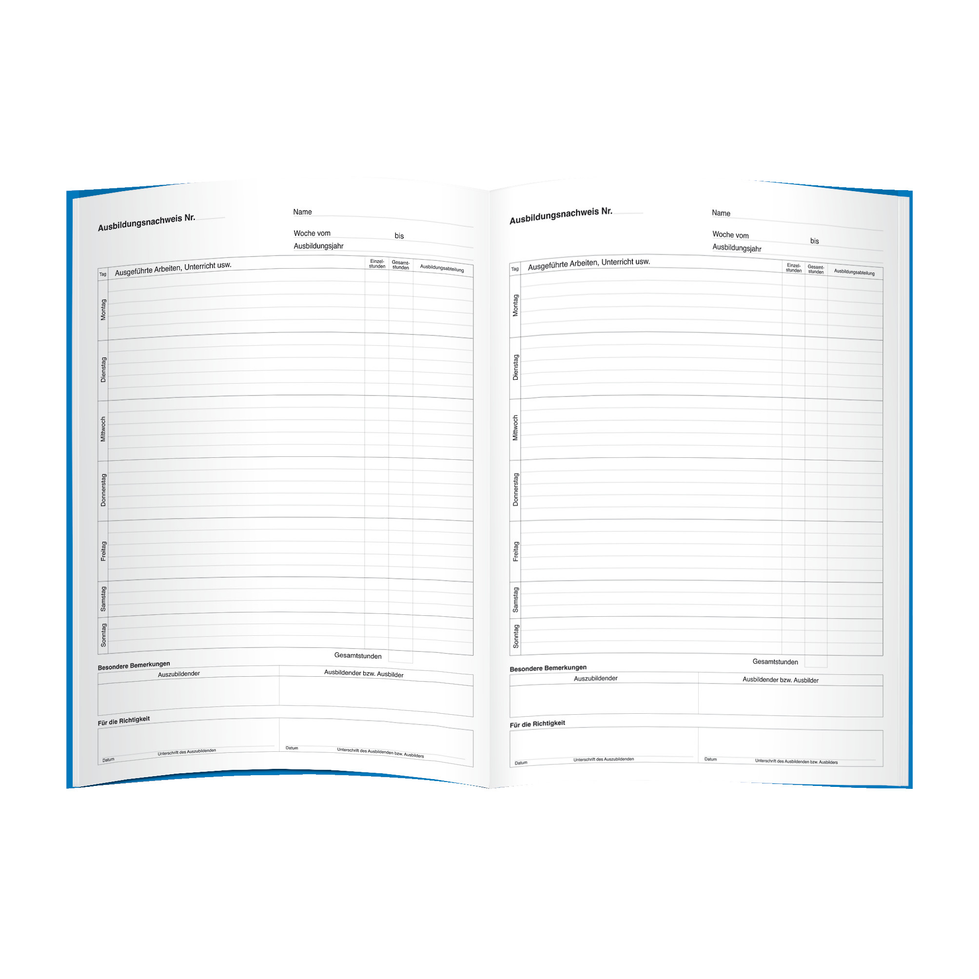 | USP | Format: A4 210x297 mm; Ausführung: Papier 80g Qualität Standard holzfrei; Druck: eine Woche je Seite, Aufteilung in Ausbildungstage und Ausbildungsstunden; Farbe: weiß; Inhalt: 28 Blatt; ideal für die Berufsausbildung |