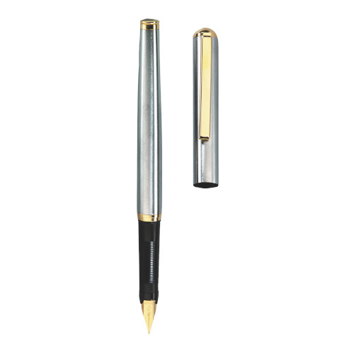 | metal gold platted fittings stainless steel M- nib with synthetic point 1 blue standard ink cartridge included 1 piece on blistercard |