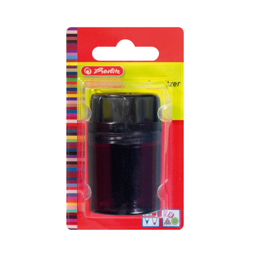 | sharpener 2-holes (regular and jumbo) metal blades plastic reservoir/container translucent assorted colours 1 piece in a blister card |