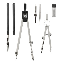 compass, dual action compass, drawing pen, -holder, lead part, lead part holder with refill lead box black in suspension package |
