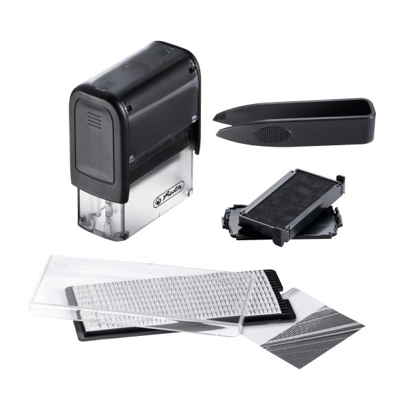 plastic self-inking, 4 lines, with letter tweezers, letters and numbers included 1 piece in cardboard box |