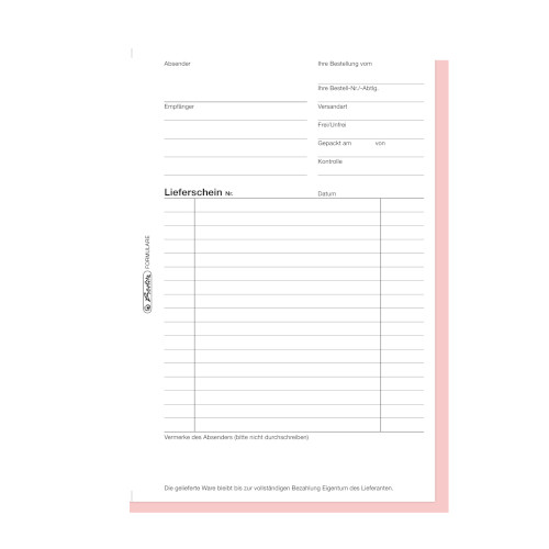 | woodfree paper 2 x 50 sheets delivery note and receipt forms with carbon paper perforated, punched 1.sh. white, 2.sh. pink 1 piece |