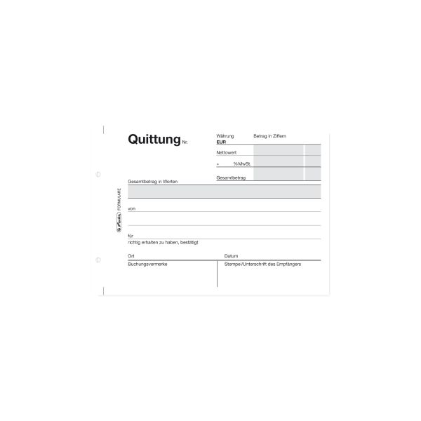 | woodfree paper 2 x 50 sheets with carbon paper 1.sh. white, with security print, perforated, punched 2.sh. white, blank 1 piece |