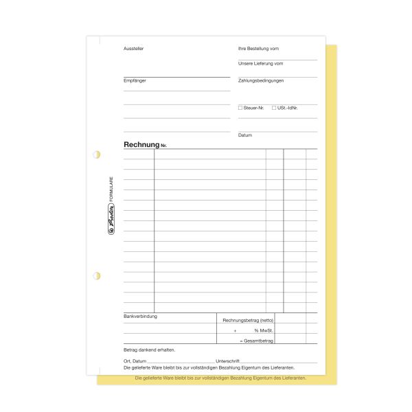woodfree paper, FSC mix 2 x 40 sheets invoice forms, non-carbon paper, self copying, w. write-protection cover, perforated, punched 1.sh. white, 2.sh. yellow 1 piece |