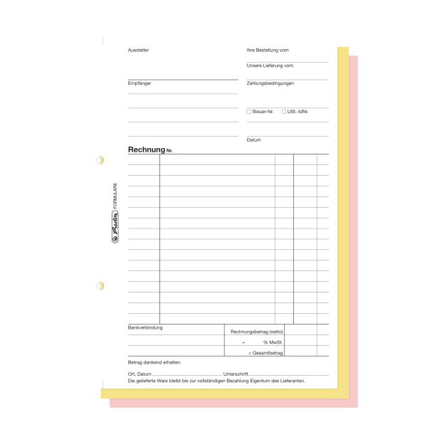 woodfree paper, FSC mix 3 x 40 sheets invoice forms, non-carbon paper, self copying, w. write-protection cover, perforated, punched 1.sh. white, 2.sh. yellow, 3.sh. pink 1 piece |