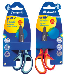 Description: | griffix Schulschere Linkshädermodell blau Rechtshändermodell rot nebeneinander, 1 Stück auf Hängekarte, Art. Nr. 804639 (SC1R rechts sortiert) und 804646 (SC1L links sortiert) |