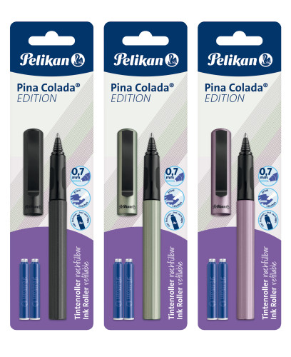 - 824422 - Ink Roller Pina Colada Edition, assorted colors, 3 colors mauve metallic, olive metallic and anthracite metallic, each including 3 small ink cartridges, on a blister card with a euro hole (Individual Picture)