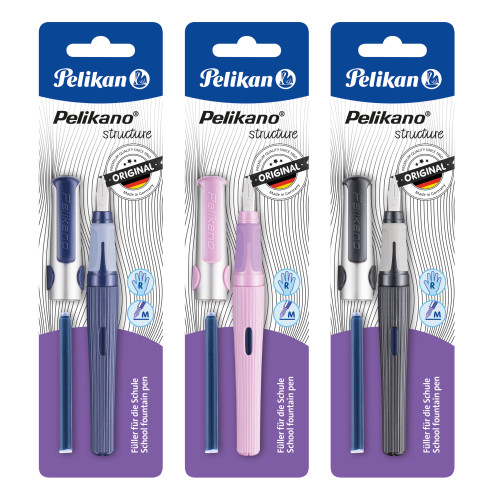 - 824569 - Pelikan Pelikano® structure Füller für Rechtshänder, farbig sortiert, Feder M, Blisterkarte (Individual Picture)