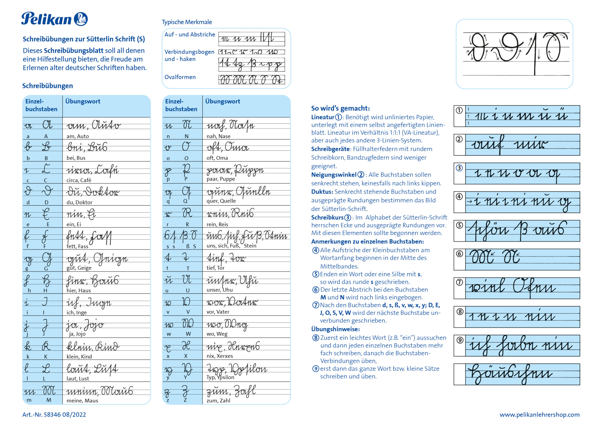 Schreibübungsblatt Deutsche Schrift, Rückseite