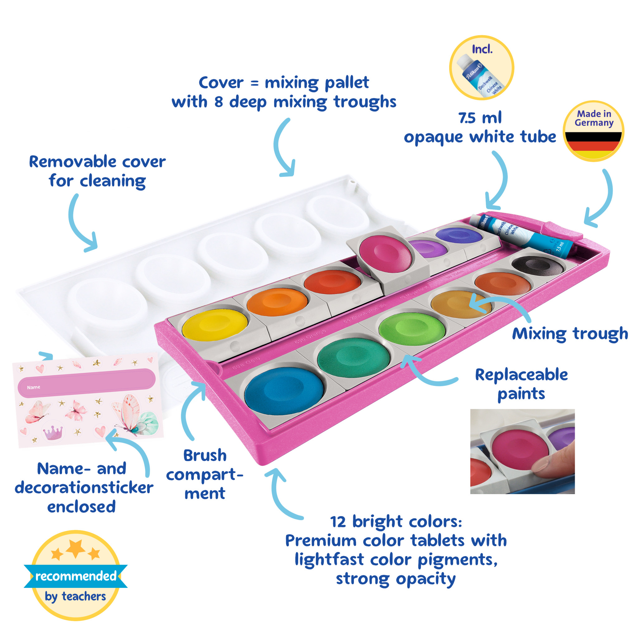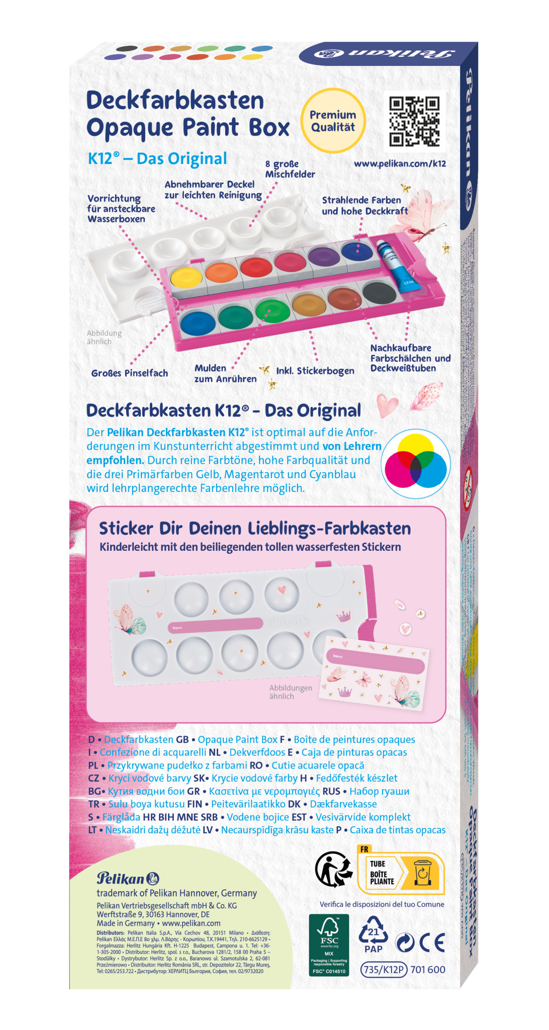 Opaque paint box 735/K12P Pink with Key facts, DE |