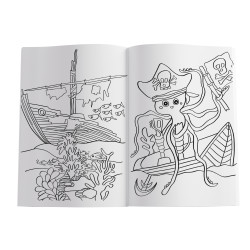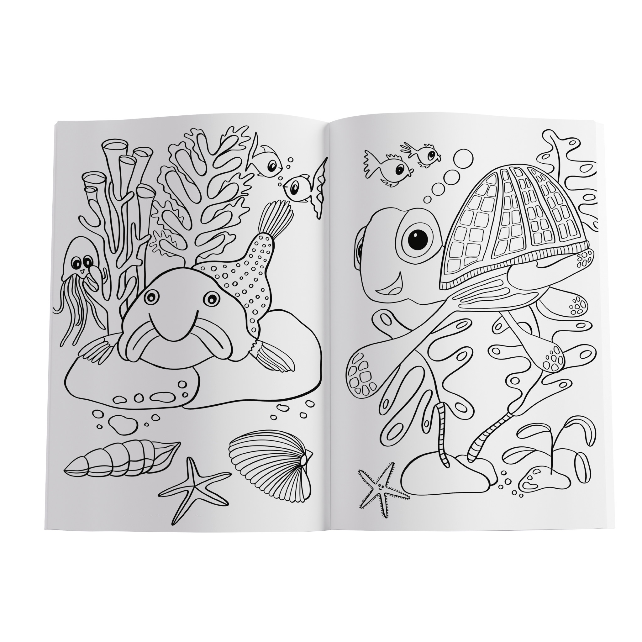 Coloring book blue sea and unicorn, super coloring book, girls coloring coloring books, sticker on face, from the front |