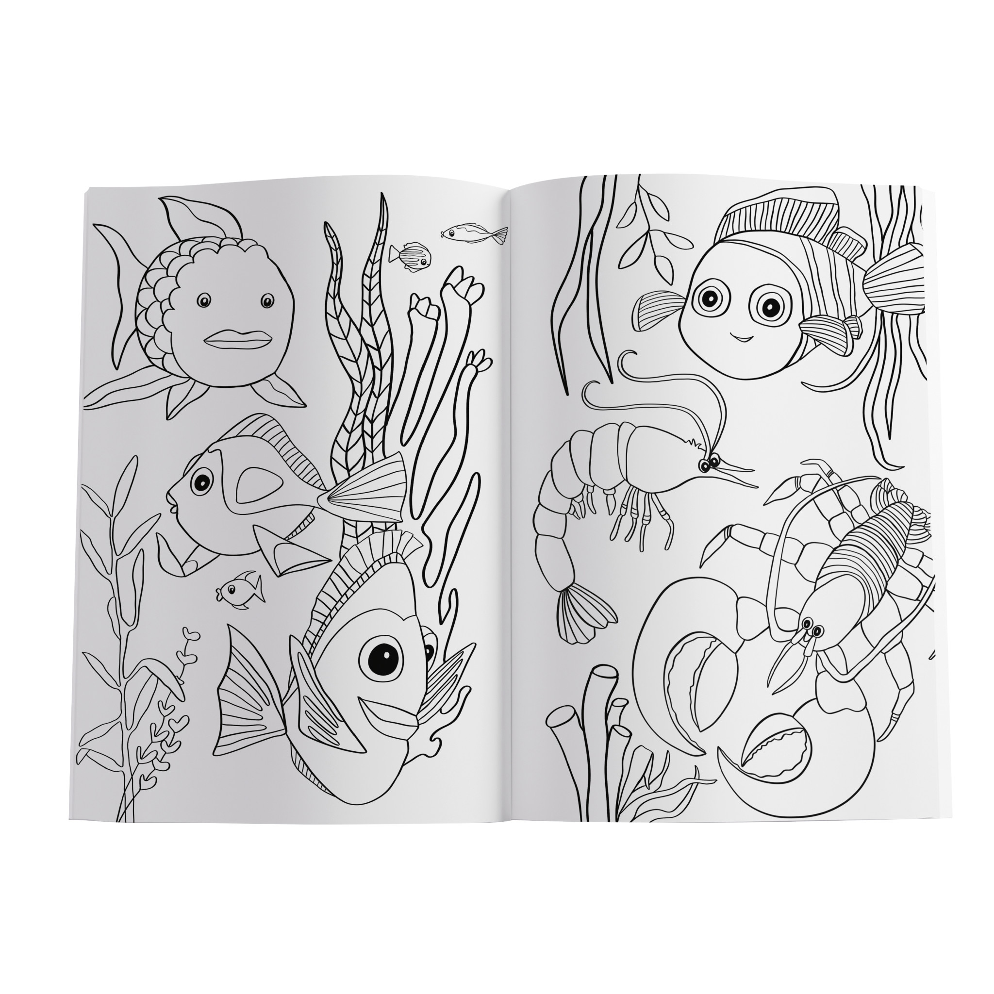 Coloring book blue sea and unicorn, super coloring book, children coloring coloring books, from the front |