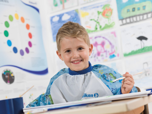 Space+ Wasserbox/ Deckfarbkasten Magenta, Malschürze Rot, Imagebild Mädchen