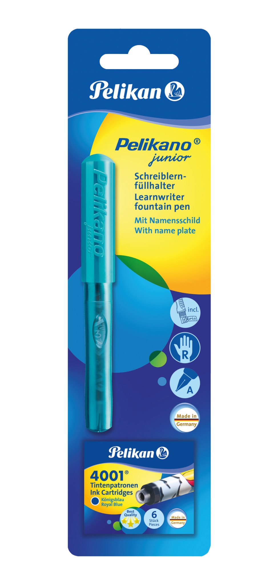 Fountain pen Pelikano Junior Turquoise, left hander, blister card