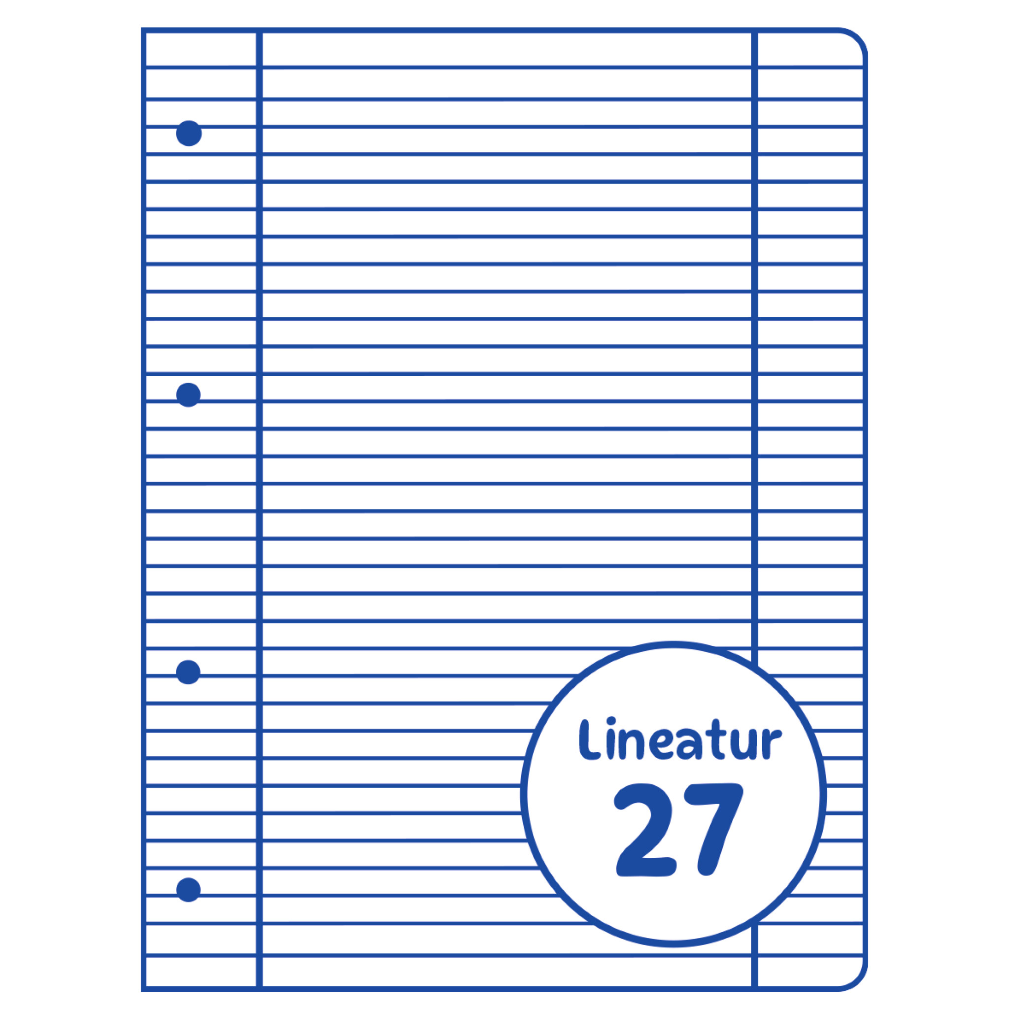 | USP | Collegeblock A4 mit Lineatur 27; Liniert mit Doppelrand; Zuverlässige Rundspirale; Abgerundete Ecken gegen Eselsohren; Praktische Ausreisshilfe und Microperforation; 4-fach Lochung; Deckblatt mit Prismen-Design; Papier FSC® zertifiziert; Grammatur: 90g/m²; 120 Blatt |