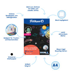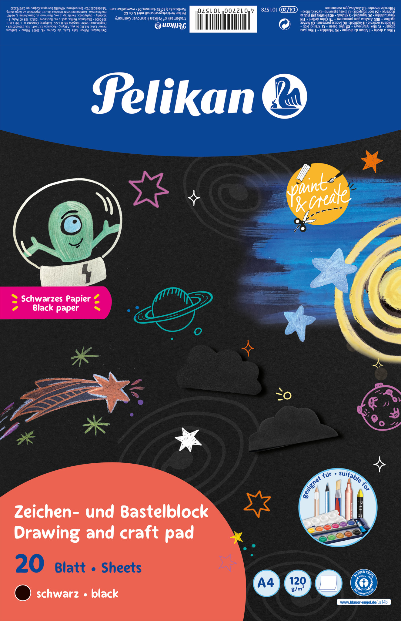 Pelikan Drawing and craft pad A4, 120g/m², 20 Blatt, Schwarz, Blauer Engel