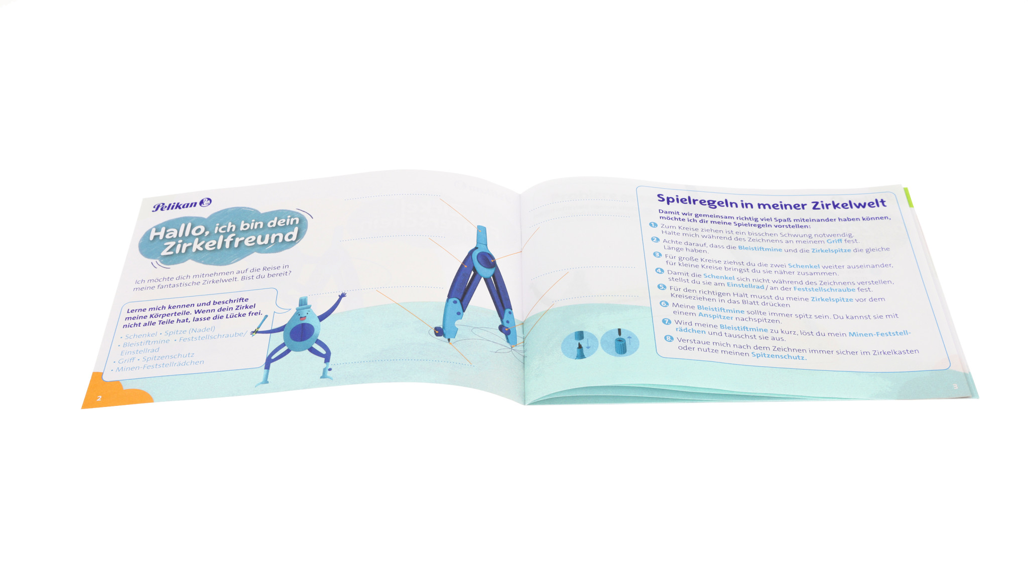 Das Zirkel-Führerschein Set rundet die Einführung des Zirkels im Unterricht perfekt ab. Im Set enthalten sind 30 Übungshefte (Format DIN A5) und 30 "Führerschein"-Kärtchen (Scheckkartenformat) für Schülerinnen und Schüler sowie ein Produktmuster des griffix Schulzirkels in der Farbe Blau. Das Übungsheft umfasst wichtige Grundbegriffe im Umgang mit dem Zirkel und eine Auswahl an Übungen mit mathematischem und gestalterischem Schwerpunkt.