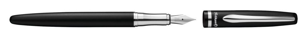 The elegant Jazz metal fountain pen is characterized by its curved lines, which makes the pen light and lively. The matt lacquered upper and lower barrel perfectly harmonize with the chrome-plated tip, ring and clip. The typical Pelikan beak shaped clip is spring-loaded and therefore particularly robust. The smooth ink supply is ensured by the convenient cartridge filling mechanism which makes the Jazz fountain pen easy to use. The polished stainless-steel nib in M-size is suitable for handwritings with bigger swings.