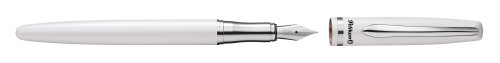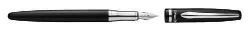Fountain pen with cartridge filling system; Matte lacquered upper and lower barrel; Chrome-plated clip, ring and tip; Robust clip due to spring mounted installation; Equipped with replaceable king-size refill; Ink color royal blue
