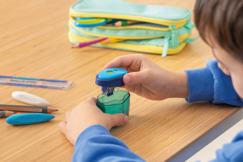 | Die Klinge der Pelikan griffix Schulschere ist 3x härter als Stahl durch eine Titan-Nitrid-Beschichtung. Die spitze Klinge eignet sich besonders gut für kleinere, filigrane Schneid-Arbeiten. Der ergonomische Griff besteht aus hartem und weichem, hochwertigen Kunststoff und ist PVC- und Latex-frei. Wie beim beliebten griffix Schreiblernsystem sorgt das lachende Griffix Gesicht für die richtige Handhaltung. Mit Namensfeld. | |