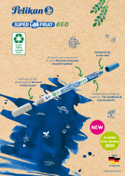 | USP | Made in Germany; 50 ink eradicators in display; Super Pirat eco; erases royal blue ink; multi tip for fine and broad erasing; overwriting tip in blue; product made of 70% recycled plastic; FSC display |