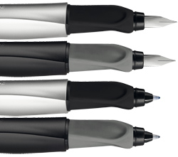| USP | Gedrehter Look in edler Farbkombination; Liegt durch die ergonomische Form perfekt in der Hand; Universell für Rechts- und Linkshänder; Füllhalter mit sanft gleitender Edelstahlfeder; Roller mit löschbarer blauer Tinte; Made in Germany |