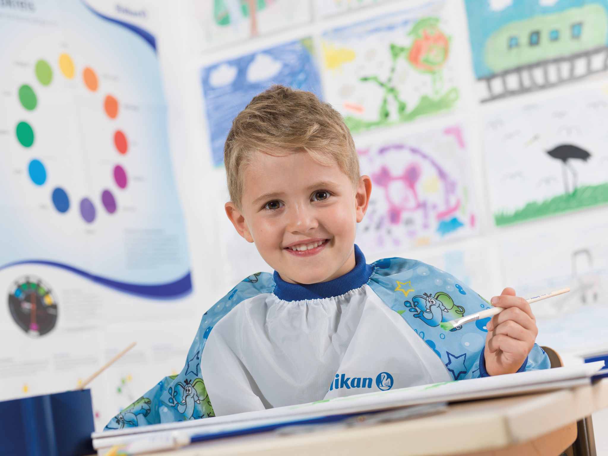 K12 Color Edition violet, water container, brush premium, drawing pad A3, girl paints from the front