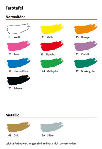 | USP | • Hobbymaler auf Wasserbasis • Hohe Deck- und Leuchtkraft auch auf dunklen Untergründen • Permanente Haftung auf saugenden Materialien • Abwaschbar auf nicht saugenden Materialien • Ohne Lösungsmittel |