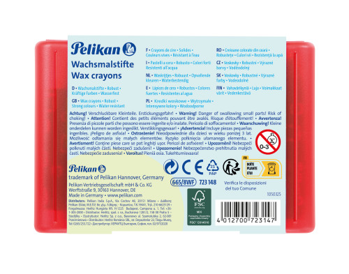 | Product description | Wax crayons 665/8WF round water-resistant, 8 colors |