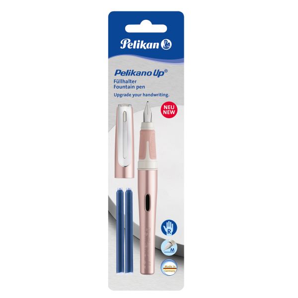 Product description | Fountain pen Pelikano Up nib M right-hander Golden Glam + 2 giant ink cartridges, blister card |