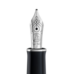 USP | Fountain pen with piston filling mechanism ; 14-carat completely rhodium plated gold nib ; Palladium-plated highlights ; Individual striped cellulose acetate material ; Diamond cut, high-grade resin casing ; Made in Germany |