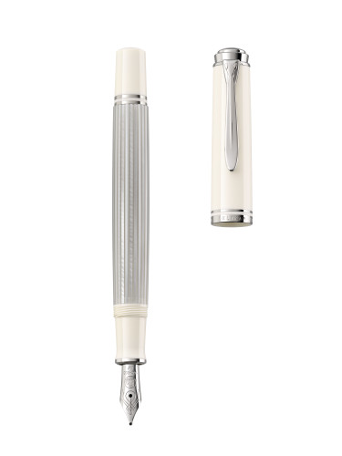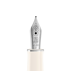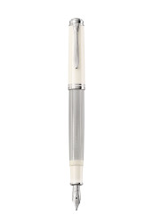 Souverän - A world-famous classic. The production of the Souverän sleeve is subject to an elaborate process. The typical, striped material is made out of cotton based on a formula developed specially for Pelikan. It takes month until the block providing the stripes is finished, whereupon the tailor-made plating is curved and cut into a contour using a natural diamond. The characteristic double rings are then integrated into the cap and barrel with the utmost precision. The writing instrument is then polished until it reaches a brilliant luster. The fountain pen M405 with piston filling mechanism consists of a 14-carat completely rhodium-plated gold nib and is available with the nib sizes EF, F, M or B. The B nib creates a brought typeface and is suitable for handwritings with big swings.