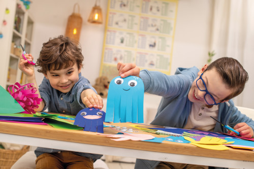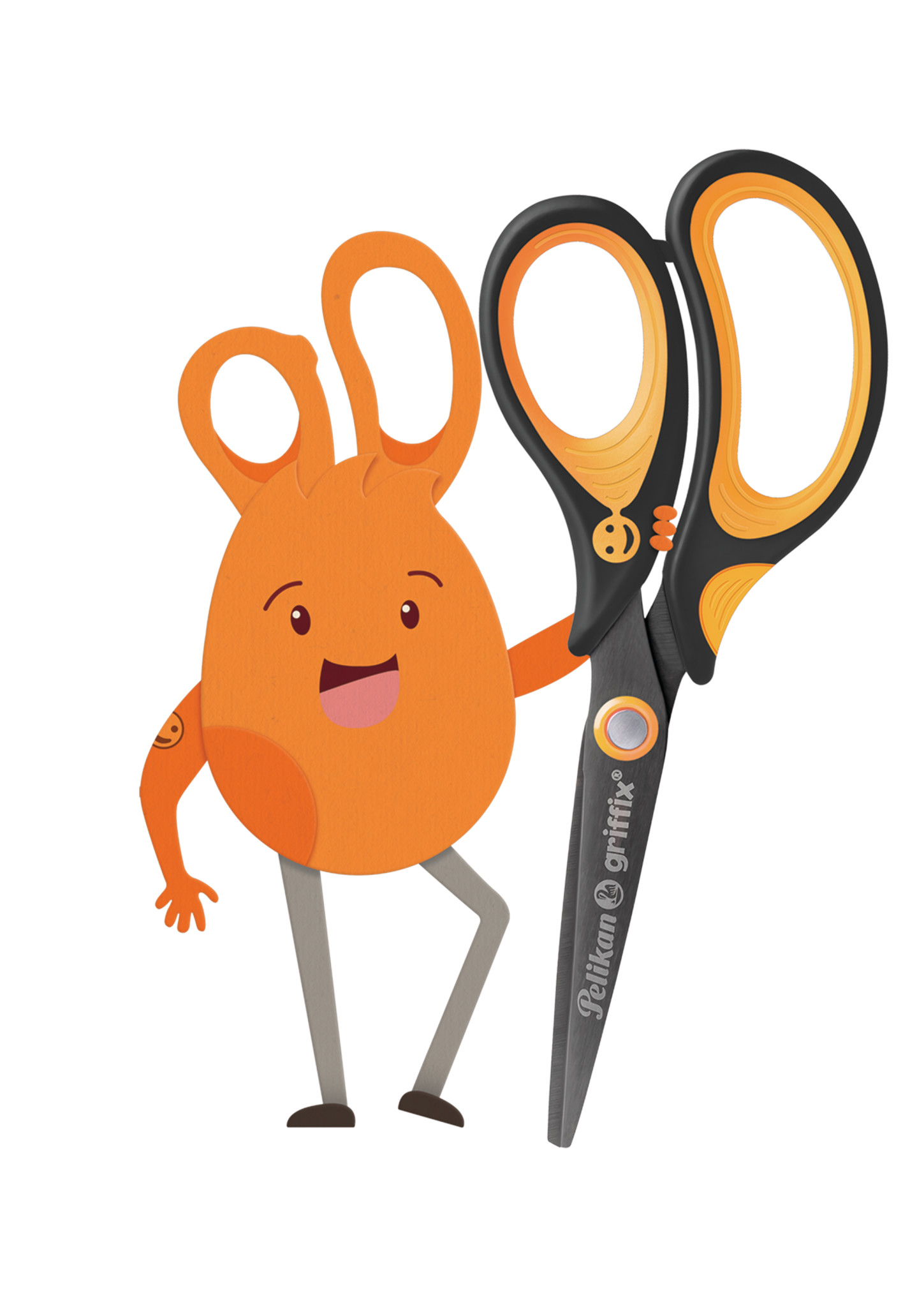Die Pelikan griffix® Schere mit spitzer Klinge ist ideal für kleinere, filigrane Schneidarbeiten. Die Klinge der Schulschere ist dank einer Titan-Nitrid-Beschichtung 3 x härter als Stahl. Dank des ergonomischen Griffs liegt die Schere bei Kindern besonders gut in der Hand. Das harte und weiche, hochwertige Kunststoff des Griffes ist PVC- sowie latexfrei. Wie beim beliebten griffix® Schreiblernsystem sorgt das lachende griffix®-Gesicht für die richtige Handhaltung. Mit Namensfeld. | |