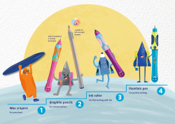 | Der Tintenschreiber ist die optimale Vorbereitung für das Schreiben mit dem Füller und die 3. Stufe des vierstufigen griffix® Schreiblernsystems. Der Tintenschreiber ist einfach zu handhaben, bringt aber schon viele Aspekte des Füllers mit: ähnliches Schriftbild, guter Reibungswiderstand auf dem Papier und flüssige Schreibbewegungen. Das ergonomische Design der griffix® Schreibgeräte fördert die richtige Handhaltung für natürliches und lockeres Schreiben in jeder Lernphase, denn alle Stifte – vom Wachsschreiber über den Bleistift und Tintenroller bis hin zum Schulfüller - sind optimal auf die individuelle Lernstufe des Kindes angepasst. Dank des einheitlichen Griffmulden-Konzepts muss das Kind bei dem aufeinander aufbauenden Schreiblernsystem die Handhaltung von Stufe zu Stufe nicht mehr ändern. Das Gute-Laune-Gesicht zeigt, dass der Stift richtig gehalten wird. griffix® unterstützt die Kinderhand damit optimal im gesamten Schreiblern-Prozess - von Anfang an. Mit griffix® macht das Schreibenlernen Spaß. |