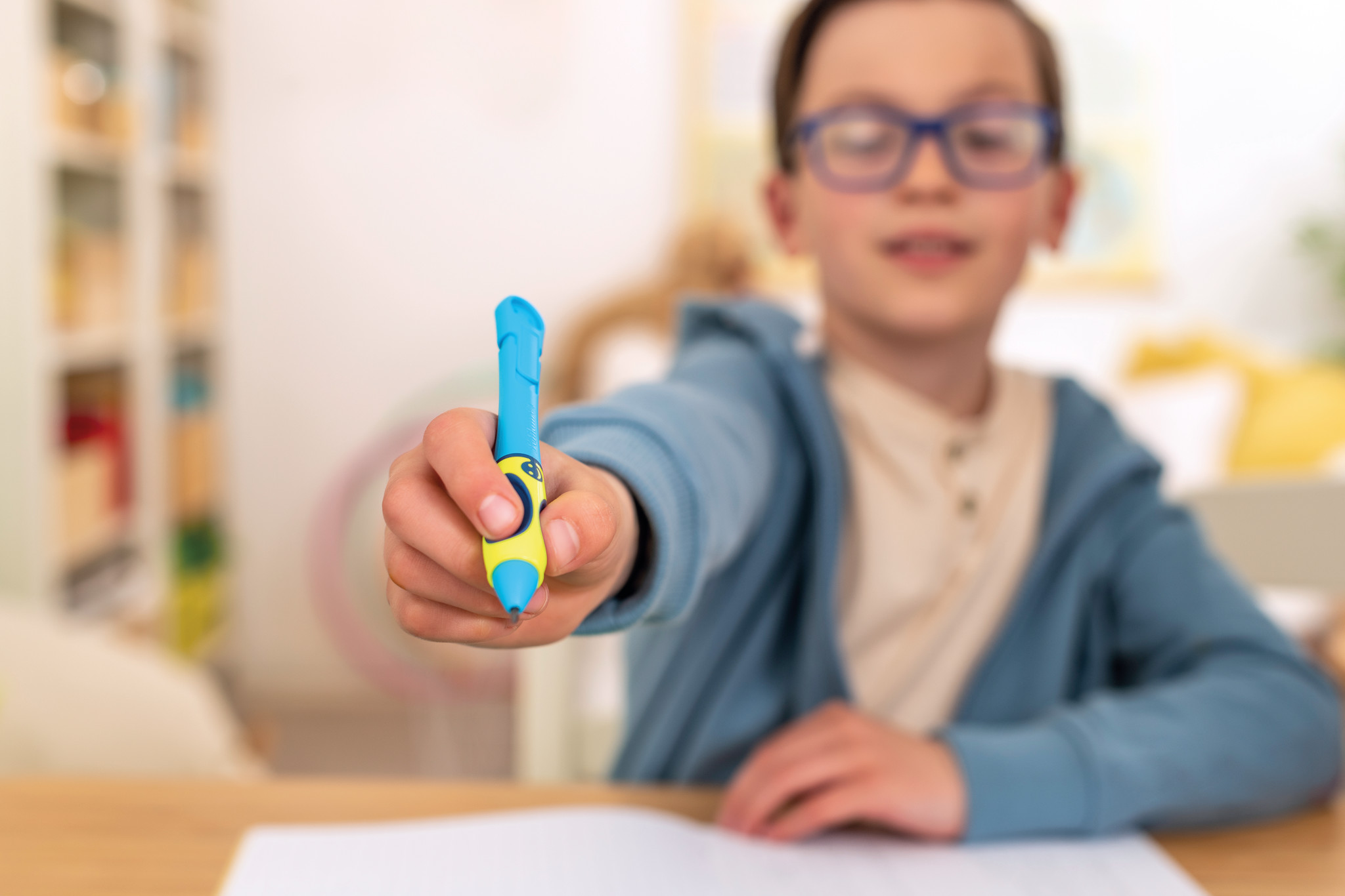 | USP | griffix® Tintenschreiber zum Schreibenlernen; Für Rechtshänder; Ergonomisches Design; Ideal zum Erlernen von flüssigen Schreibbewegungen; Für den ersten Umgang mit flüssiger Tinte; Druckstabile Faserschreiberspitze; Für ein schönes und sauberes Schriftbild; Gute-Laune-Gesicht zeigt richtige Stifthaltung an; Mit großem Tintensichtfenster; Mit Namensfeld für die individuelle Beschriftung; Mit Lehrern und Wissenschaftlern entwickelt; Inklusive 2 Tintenschreiberpatronen; Farbe: Neon Fresh Blue; Made in Germany |