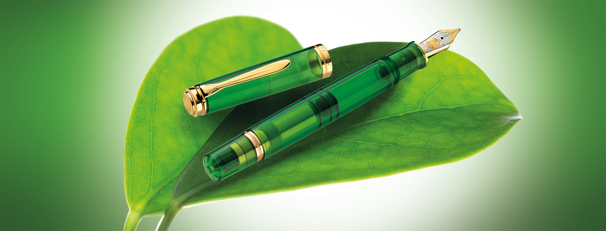 Souverän - A world-famous classic. The transparent casing is subject to an elaborate process. The material of the casing consists of high-grade resin and it takes month until it is finished, whereupon the tailor-made plating is curved and cut into a contour using a natural diamond. The one-piece cap and filling knob rings, each with a glossy and satin finish, give this fountain pen an extraordinary look. The green-transparent components allow a view of the piston mechanism and also the ink level. The fountain pen with M800 piston filling mechanism consists of a 18-carat bi-color gold nib with rhodium trim and is available with the nib sizes EF, F, M or B. The F nib creates a fine typeface and is suitable for handwritings with smaller swings. |