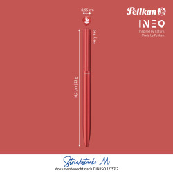 Unique and eye-catching - that is INEO, the new writing instrument series from Pelikan. The series is characterized by its unique design language. The sandblasted surface provides a matte finish to the colorful anodized devices, which makes the pen pearl shimmering in the light. The look and feel is inspired by minimalism with its reduced design language, calm colors and high-quality processing of natural materials. The special highlight of the Ineo is the missing clip. A feature that sets it apart from other writing instruments of its kind and makes it an eye-catcher in everyday life. INEO is currently available as fountain and ballpoint pen in 6 trendy colors: Clearing Breeze (silver), Black Rock (black), Ocean-Blue (petrol-blue), Lavender Scent (purple-violet), Fiery Red (red) and Green Oasis (green). |