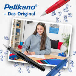 Der Pelikan Füller Pelikano® ist das originale Schreibgerät aus dem Traditionshaus Pelikan. Der erste Pelikano® wurde im Jahre 1960 auf den Markt gebracht und war damit eines der ersten Jugendschreibgeräte in Deutschland. Durch die jahrelange Erfahrung wurde der Pelikano® Füller stets weiterentwickelt. Mit seinem trendigen Design ist der Füllhalter das ideale Schreibgerät für junge Leute. Dieser Pelikano® ist für die Bedürfnisse von Rechtshändern konzipiert. Durch die Edelstahl-Feder gleitet der Pelikan Füllhalter sanft über die Oberfläche und bringt jeden Gedanken spielend leicht aufs Papier. Darüber hinaus sorgt die sanfte Feder für kratzfreies Schreiben und verhindert das Auslaufen der Tinte. Die spezielle Soft-Griffzone des Füllers unterbindet, dass die Finger beim längeren Schreiben ermüden. Zusätzlich verhindert die hochwertige Metallkappe des Schreiblernfüllers das Wegrollen. Im großen Tintensichtfenster kann mit einem Blick der Tintenstand in der Patrone abgelesen werden. Dem Pelikano® Füller liegt standardmäßig eine königsblaue Pelikan Tintenpatrone mit löschbarer Tinte bei. Diese Tinte lässt sich bei kleinen Schreibfehlern problemlos durch einen Tintenlöscher von Pelikan rückgängig machen. Alle Pelikano® Trendschreibgeräte werden in Deutschland gefertigt. Qualität made in Germany – Made by Pelikan. Der Pelikano® Füller in Blau kommt in einer passenden Faltschachtel mit einer königsblauen Großraum-Tintenpatronen inklusive. |