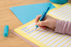 Schreiben ist nicht schwer. Schreibenlernen umso mehr. Daher hat das Traditionsunternehmen Pelikan mit dem Schreiblern-Füllhalter Pelikano® junior ein Schreibgerät entwickelt, dass auf die Bedürfnisse von Schreibanfängern angepasst ist. Mit seinen trendigen Farbkombinationen ist der Füller das ideale Schreibgerät für junge Leute. Die robuste Edelstahlfeder in der Federstärke A ist ideal für Rechtshänder. Sie unterstützt den Schreibanfänger und ermöglicht ein müheloses Gleiten der Feder über das Papier. Darüber hinaus sorgt die sanfte Feder für kratzfreies Schreiben und verhindert das Auslaufen der Tinte. Die spezielle Soft-Griffzone des Füllers unterbindet, dass die Finger auf die Feder rutschen. Zusätzlich verhindert die Form des Schreiblernfüllers und dessen Kappe das Wegrollen. Dem Pelikano® junior Füller liegt standardmäßig eine königsblaue Pelikan Tintenpatrone mit löschbarer Tinte bei. Diese Tinte lässt sich bei kleinen Schreibfehlern problemlos durch einen Tintenlöscher von Pelikan rückgängig machen. Im großen Tintensichtfenster kann mit einem Blick der Tintenstand in der Patrone abgelesen werden. Alle Pelikano® junior Schreibgeräte werden in Deutschland gefertigt. Qualität made in Germany – Made by Pelikan. Der Pelikano® junior Füller in Blau kommt in einer passenden Faltschachtel mit einer königsblauen Großraum-Tintenpatronen inklusive. |