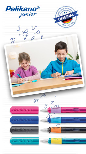| Schreiben ist nicht schwer. Schreibenlernen umso mehr. Daher hat das Traditionsunternehmen Pelikan mit dem Schreiblern-Füllhalter Pelikano® junior ein Schreibgerät entwickelt, dass auf die Bedürfnisse von Schreibanfängern angepasst ist. Mit seinen trendigen Farbkombinationen ist der Füller das ideale Schreibgerät für junge Leute. Die robuste Edelstahlfeder in der Federstärke L ist ideal für Linkshänder. Sie unterstützt den Schreibanfänger und ermöglicht ein müheloses Gleiten der Feder über das Papier. Darüber hinaus sorgt die sanfte Feder für kratzfreies Schreiben und verhindert das Auslaufen der Tinte. Die spezielle Soft-Griffzone des Füllers unterbindet, dass die Finger auf die Feder rutschen. Zusätzlich verhindert die Form des Schreiblernfüllers und dessen Kappe das Wegrollen. Dem Pelikano® junior Füller liegt standardmäßig eine königsblaue Pelikan Tintenpatrone mit löschbarer Tinte bei. Diese Tinte lässt sich bei kleinen Schreibfehlern problemlos durch einen Tintenlöscher von Pelikan rückgängig machen. Im großen Tintensichtfenster kann mit einem Blick der Tintenstand in der Patrone abgelesen werden. Alle Pelikano® junior Schreibgeräte werden in Deutschland gefertigt. Qualität made in Germany – Made by Pelikan. Der Pelikano® junior Füller in Pink kommt in einer passenden Faltschachtel mit einer königsblauen Großraum-Tintenpatronen inklusive. |