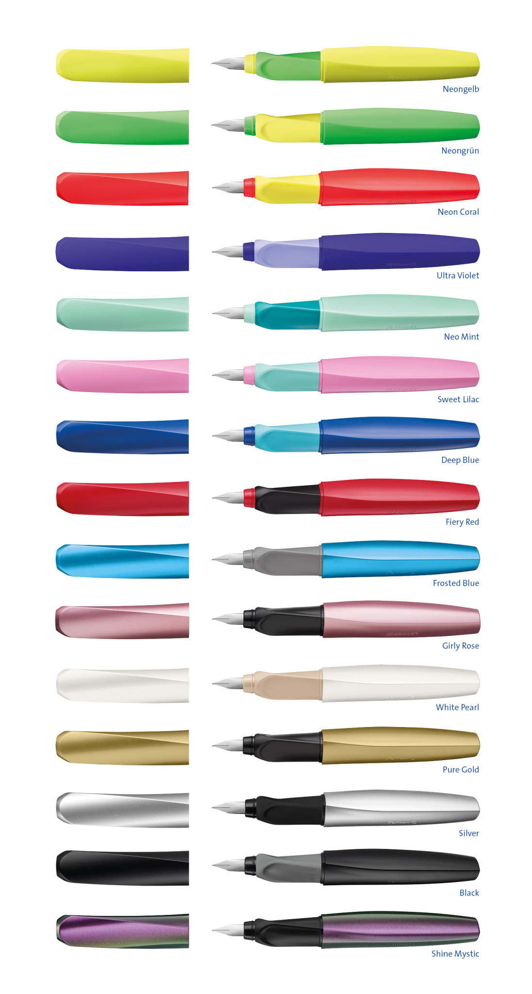 USP | Einzigartig gedrehter Look; In trendigen Farbkombinationen; Liegt durch die ergonomische Form perfekt in der Hand; Mit Griffprofil; Ideal für längeres Schreiben; Universell für Rechts- und Linkshänder; Füllhalter mit sanft gleitender Edelstahlfeder; Kratzfreies Schreiben; Made in Germany |