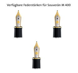 Souverän - A world-famous classic. The production of the Souverän sleeve is subject to an elaborate process. The typical, striped material is made out of cotton based on a formula developed specially for Pelikan. It takes month until the block providing the stripes is finished, whereupon the tailor-made plating is curved and cut into a contour using a natural diamond. The characteristic double rings are then integrated into the cap and barrel with the utmost precision. The writing instrument is then polished until it reaches a brilliant luster. The fountain pen M400 with piston filling mechanism consists of a 14-carat bi-color gold nib with rhodium trim and is available with the nib sizes EF, F, M or B. The M nib creates a medium typeface and is suitable for handwritings with bigger swings.